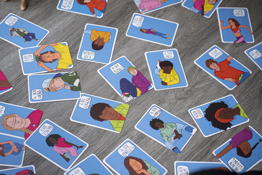 Een tweede mogelijkheid is om met een (kleine) groep de kaarten te bespreken. Vervolgens kunnen de kaarten worden verdeeld per kind, welke kracht past bij het ene of het andere kind.